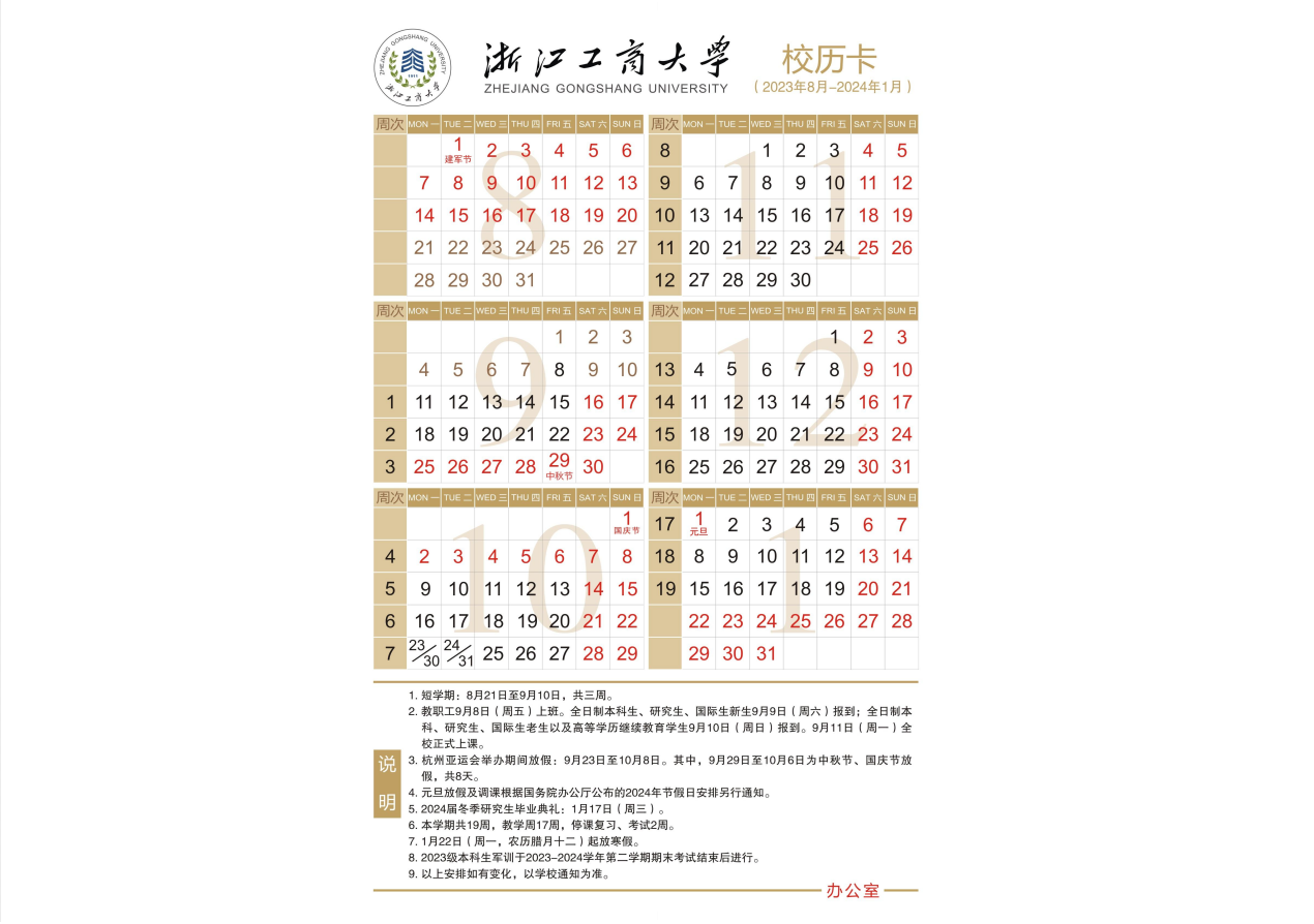 • 2023-2024学年第一学期校历