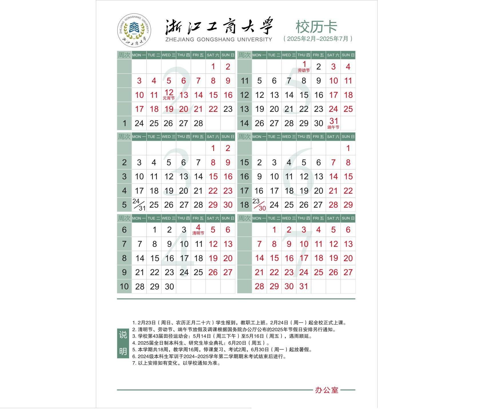 • 2024-2025学年第二学期校历
