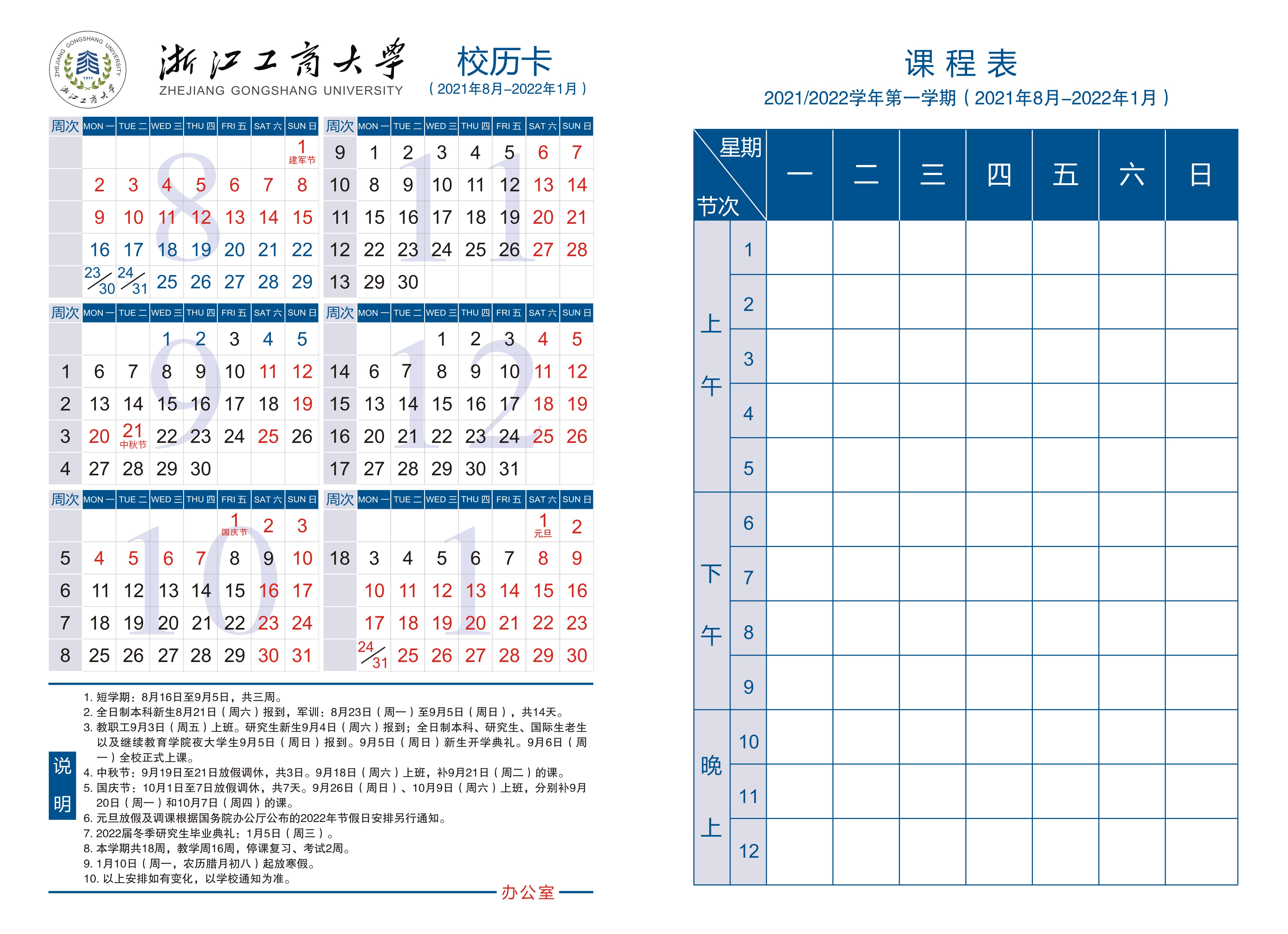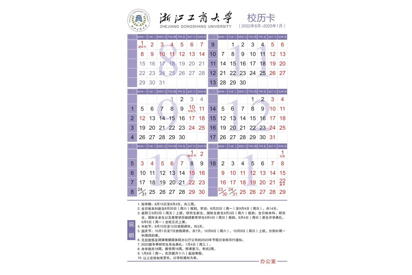 • 2022-2023学年第一学期校历