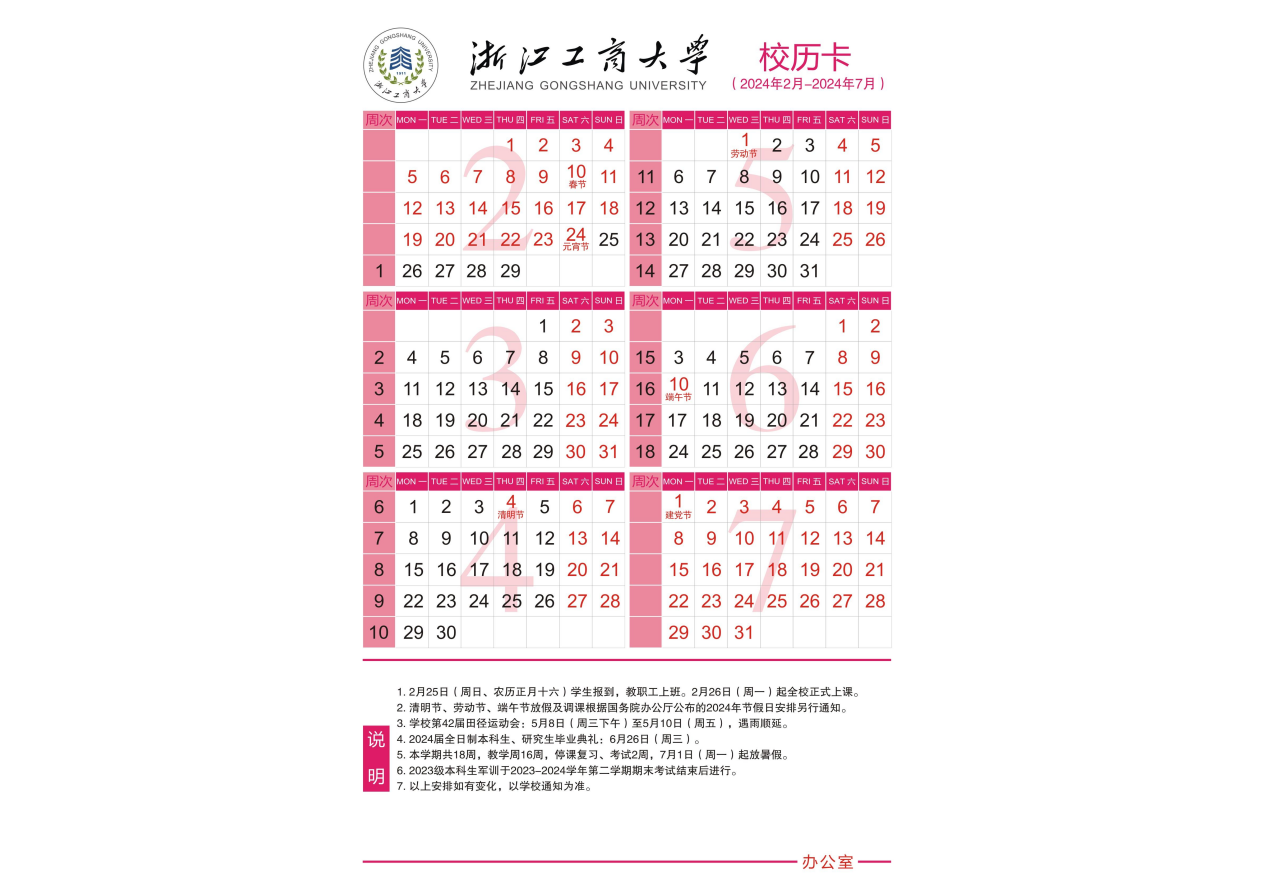 • 2023-2024学年第二学期校历