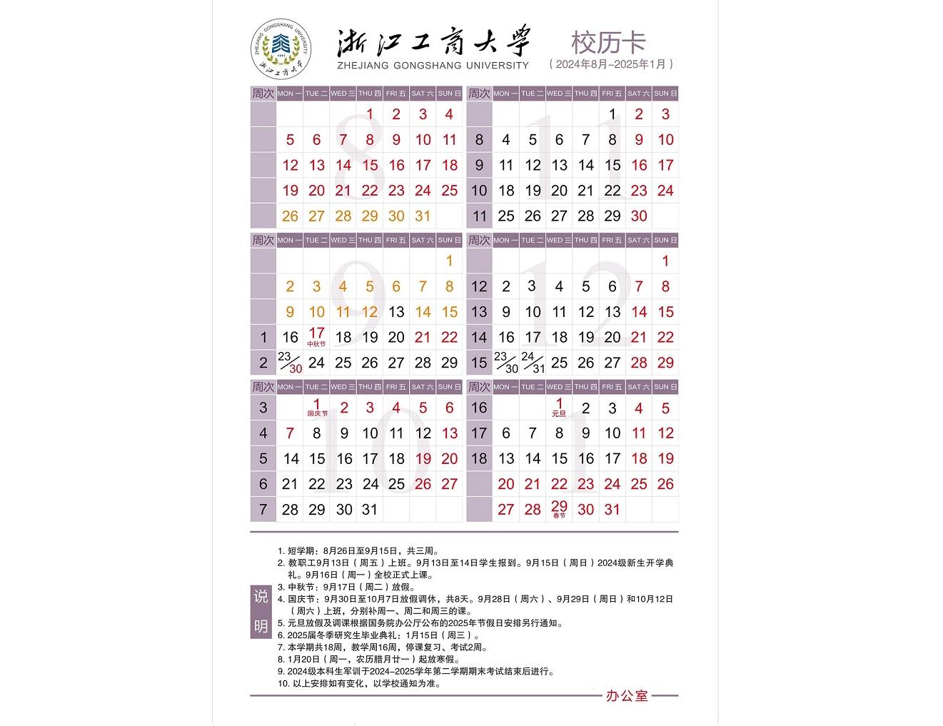 • 2024-2025学年第一学期校历