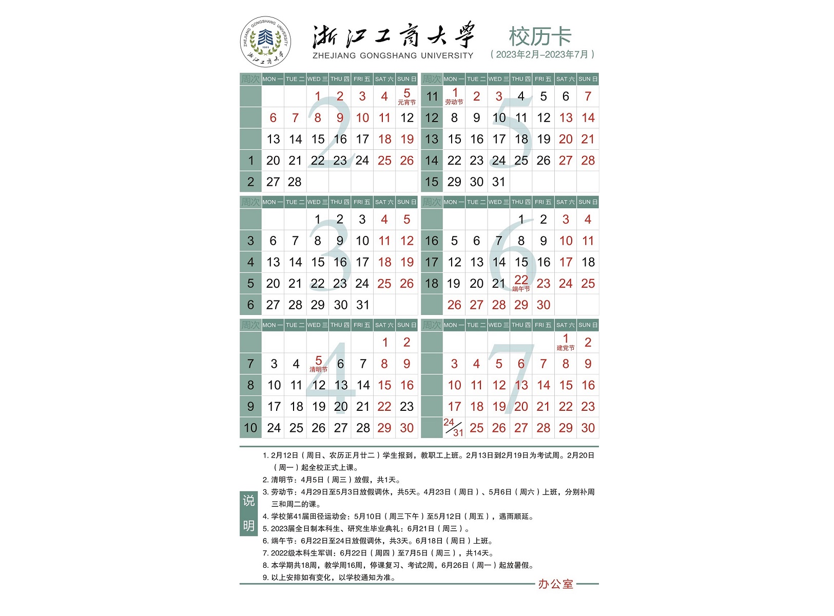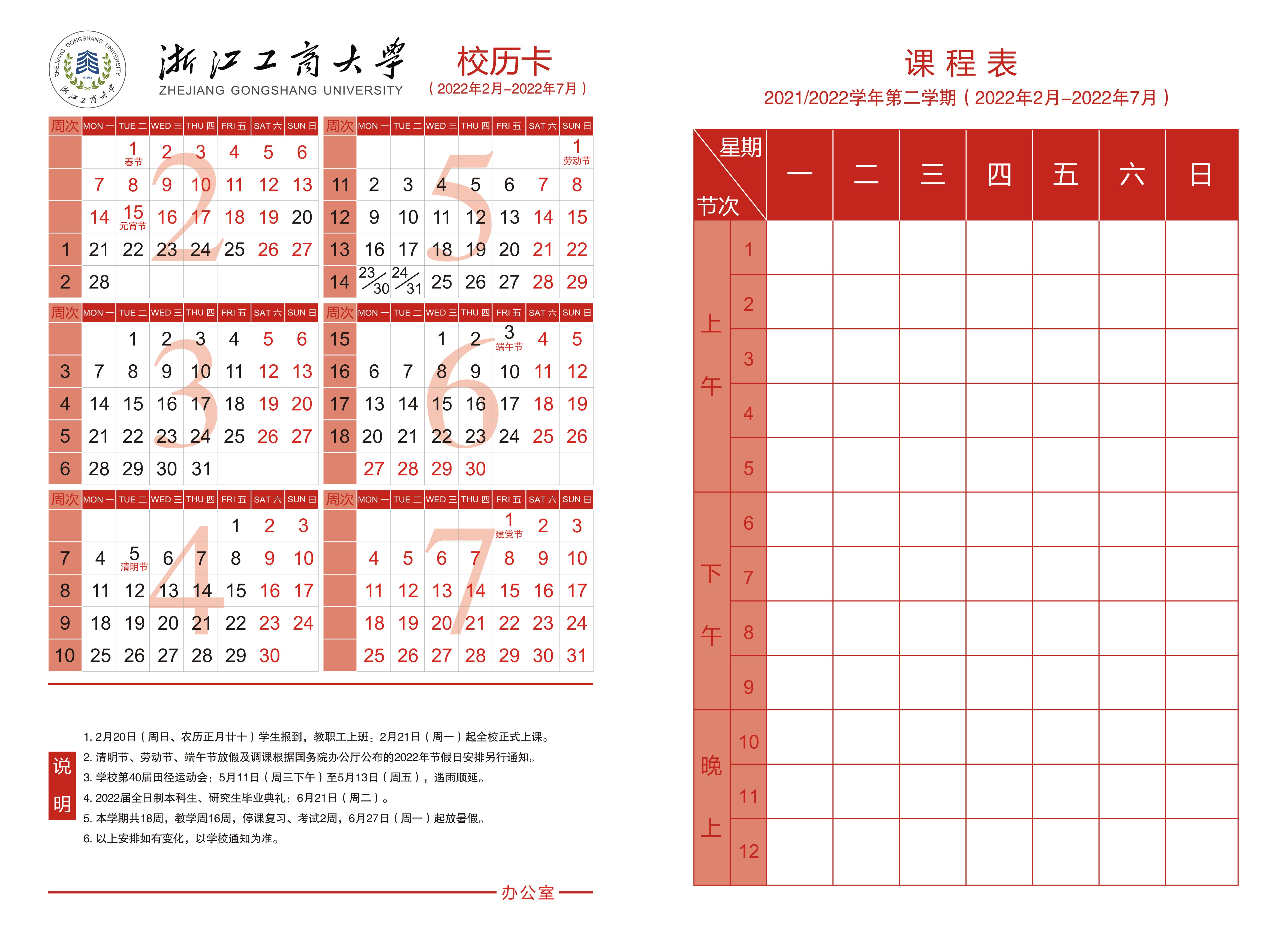 • 2022-2023学年第二学期校历
