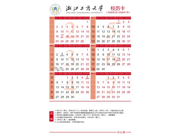• 2025-2026学年第二学期校历