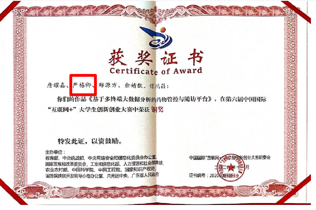 团委副书记,也是普惠金融2003班班助。获得院、校、省级奖项15余项,志愿时数150小时;喜欢瞎逛干饭,也喜欢看书泡图书馆;最喜欢的还是出门实践长见识啦。/span>/p> 图 | “基于多终端大数据分析的药物管控与随访平台”项目获第六届中国国际“互联网+”大学生创新创业大赛国赛铜奖 竞赛人 /span> Q:在比赛中,你所遇到意想不到的挑战是什么?/span> Q:你认为在此类比赛中最需要的能力或者品质是什么?/span> Q:参加此次比赛你最大的收获是什么?/span> 经验分享/span> 我认为创业类型的项目更适合跨专业的合作,需要大家跨出自己的交际圈,认识不同专业的朋友,例如我做这个比赛就是一次很偶然的机会,非常感谢项目负责人的邀请。/span>
