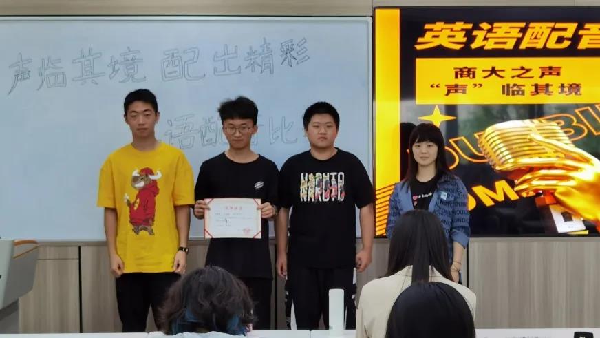 根据评委老师和学生代表的打分,主持人公布了本次英语配音大赛的获奖名单,并由评委老师为获奖选手颁发了奖品、荣誉证书并拍照留念。