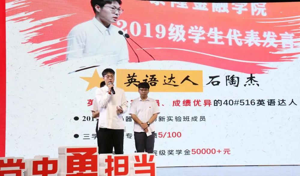 石陶杰同学作为寝室的英语达人,两年来专业成绩位列全院前5%,大一参加新生飞跃计划,前往美国宾夕法尼亚大学交流学习,这不仅开拓了他的视野,更坚定了他学习英语的决心,因此回国后,他不断钻研苦练,英语六级首考便取得593分,斩获大英赛全国二等奖、大学生英语翻译大赛全国一等奖等国家级奖项。Be hungry and humble(保持饥渴和谦虚)是他的座右铭,他不断带动并鼓励室友,激发他们学习英语的热情。
