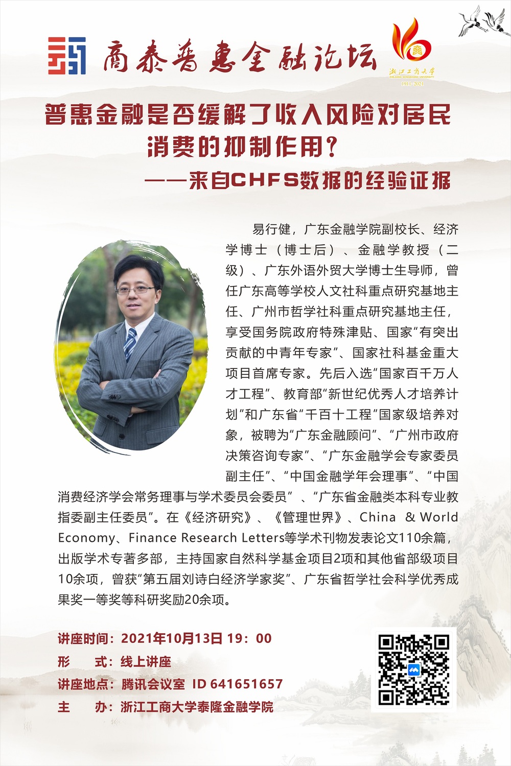 预告丨商泰普惠金融论坛——普惠金融是否缓解了收入风险对居民消费的抑制作用——来自CHFS数据的经验证据