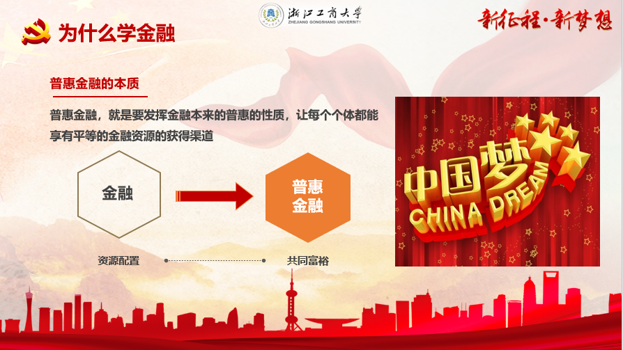 杨弋老师以“普惠金融与中国梦”为主题,按照“普惠金融的本质—疏通金融的‘最后一公里’—践行中国梦”的班课设计思路,将普惠金融方向与我们国家“共筑中国梦”的思政元素深度融合,凸显和强化了价值引领。这不仅坚定了同学们的专业自信,而且树立了金融学(小微、普惠金融人才)专业的使命担当。