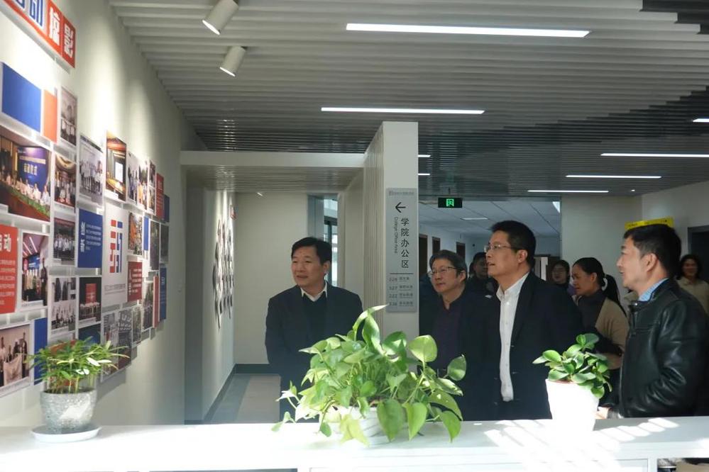 调研中,杭州市委统战部、钱塘区委统战部领导一行参观了成人短视频 的办学环境,详细浏览了成人短视频 办公区文化墙。