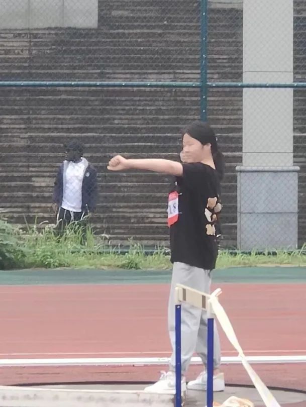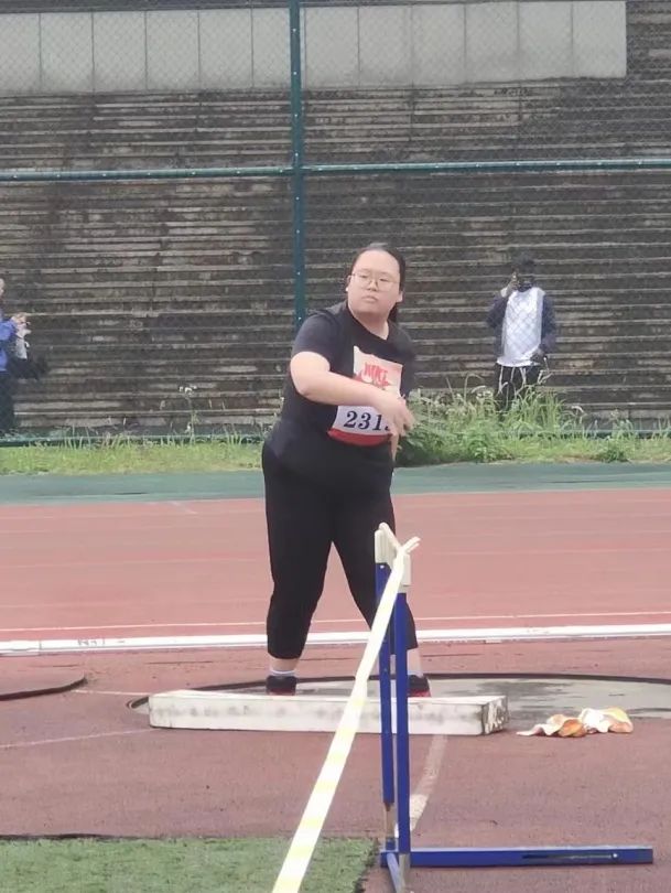 手握铅球,凝聚青春的力量。丁梓仪、谢春静奋力一抛,铅球从空中拋过,留下了一个精彩的抛物线。