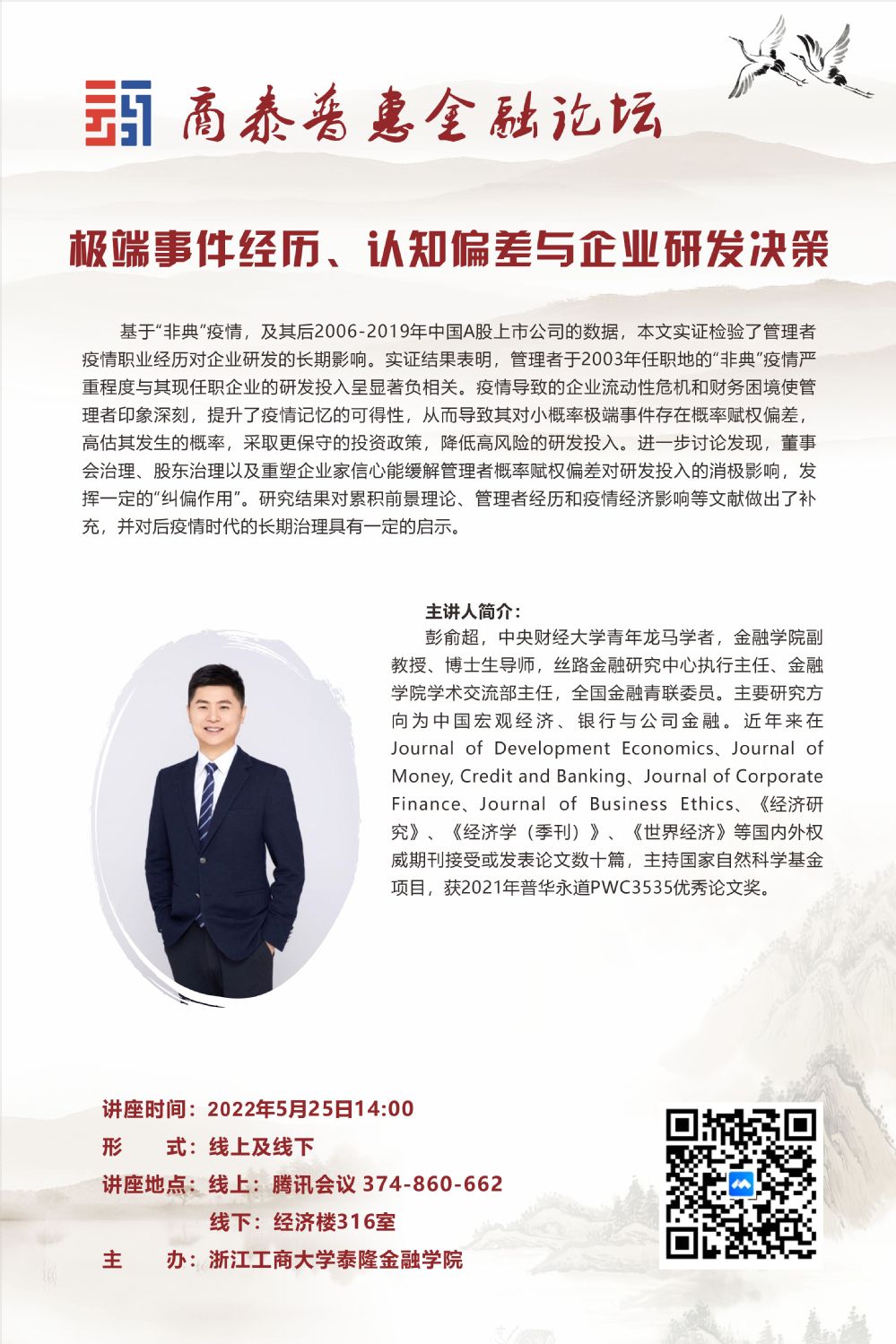 商泰普惠金融论坛——极端事件经历、认知偏差与企业研发决策
