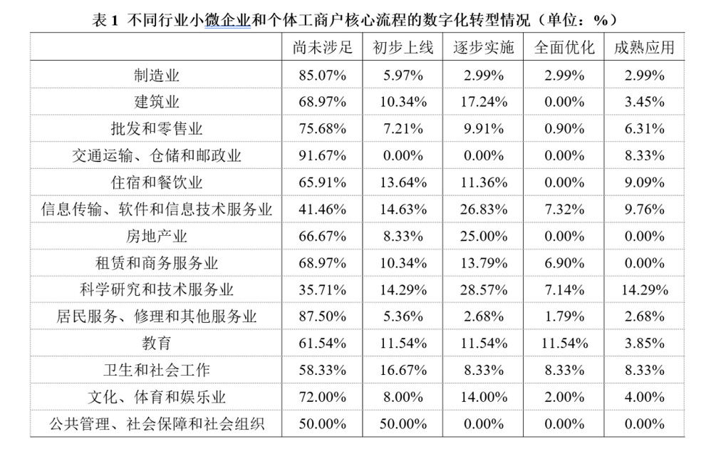 图1 小微企业(左)和个体工商户(右)核心流程的数字化转型情况