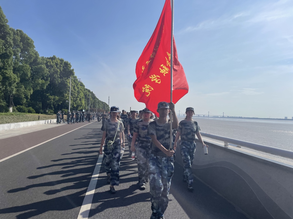 按照训练计划,同学们要学习踢正步,这对身体的平衡、姿态和力量的要求都非常高。同学们挺胸收腹,头微微抬高,目含坚定正视着前方,挺拔如松,方阵齐整。