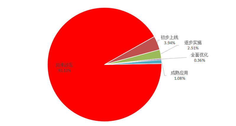 根据核心流程的转型进度,将数字化转型划分为尚未涉足、初步上线、逐步实施、全面优化和成熟应用等几个阶段。调查结果表明,超过六成的小微企业和超过九成的个体工商户都尚未涉足核心流程的数字化转型;一成左右的小微企业和不到一成的个体工商户正在初步上线数字化;仅有不到两成的小微企业和不到一成的个体工商户正在逐步实施,不到一成的小微企业和个体工商户能够成熟应用数字化。这表明小微企业和个体工商户在核心流程的数字化转型进度都较为缓慢。