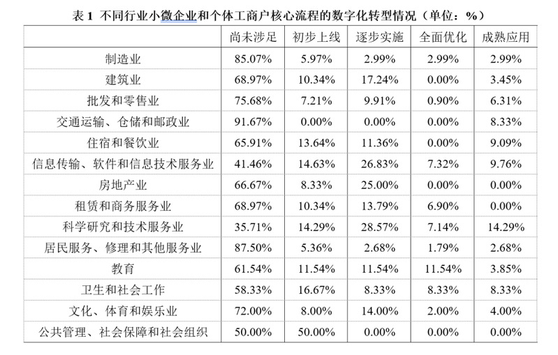 图1 小微企业(上)和个体工商户(下)核心流程的数字化转型情况