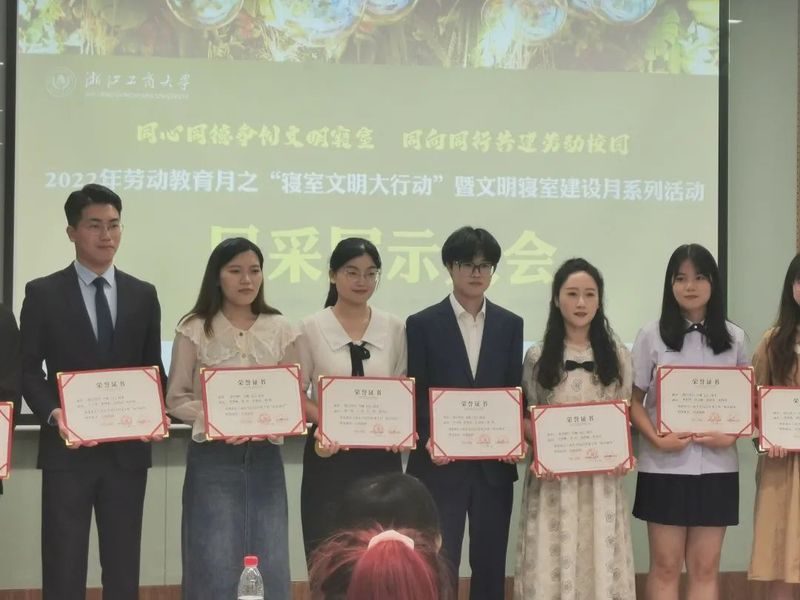 由校学生工作部、研究生工作部、后勤服务中心联合举办的2021年度校十佳“标兵寝室”评比大会于6月1日下午在学生活动中心多功能厅隆重举行。经现场评委打分,成人短视频 40幢510寝室荣获校十佳“标兵寝室”荣誉称号。
