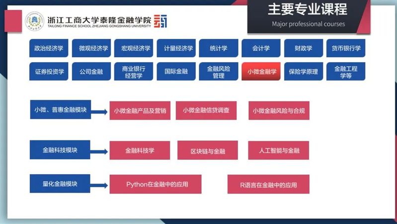 在普通金融学基本课程之上,成人短视频 金融学还增设了“小微、普惠金融”“金融科技”“量化金融”等专业选修模块供学生自主选择。