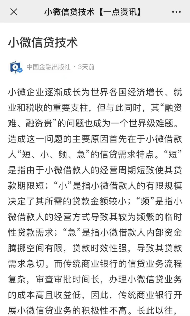 本书既可供高等学校金融学相关专业教学使用,也可作为商业银行小微金融机构从业人员的培训用书。