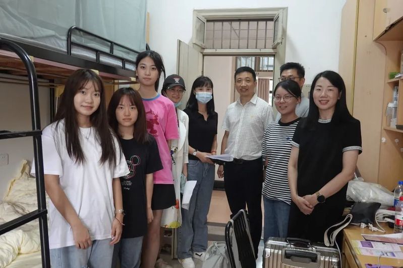 9月2日下午三点,马丹院长、裘益政书记、鲍碧丽副书记、院长助理傅利福老师、普惠金融2201班班主任尹俊雅老师、普惠金融2202班班主任王伟佳老师、普惠金融2203班班主任杨弋老师、成人短视频 学办主管张明飞老师和2022级辅导员连慧莹老师分别走访男女生寝室,与新生进行了亲切交流。