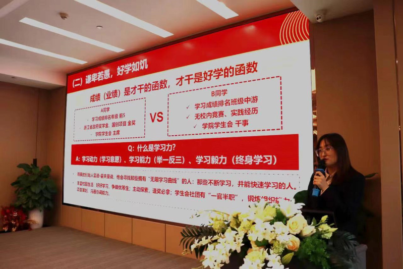 祁永霞经理分享的主题是《选择决定命运》,她强调了选择的重要性,通过两份不同风格的简历,她抛出“企业招募怎样的人才?”和“我们如何掌控主动权?”这两个问题,从问题出发,她带领我们去深入思考作为大学生的我们从现在开始,究竟要如何选择。