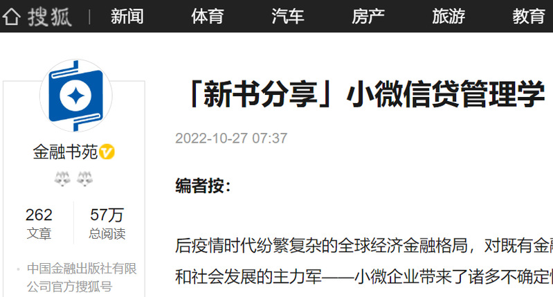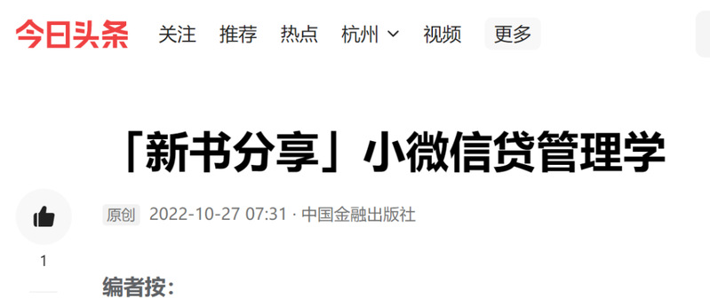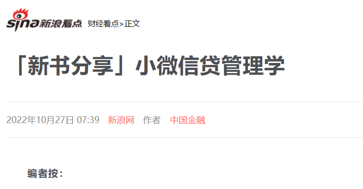 小微金融丛书第二本正式出版,引起广泛关注!