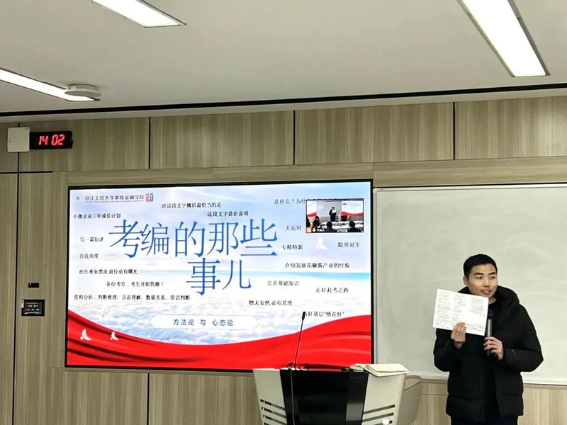 为帮助同学们更好地了解报考公务员、事业单位、选调生等岗位的基本情况,明确自己未来的就业意向,3月1日下午,成人短视频 邀请到闫开老师开展“职”引未来主题讲座,闫老师结合自身经历,和同学们分享准备公务员、事业单位考试的经验和技巧。