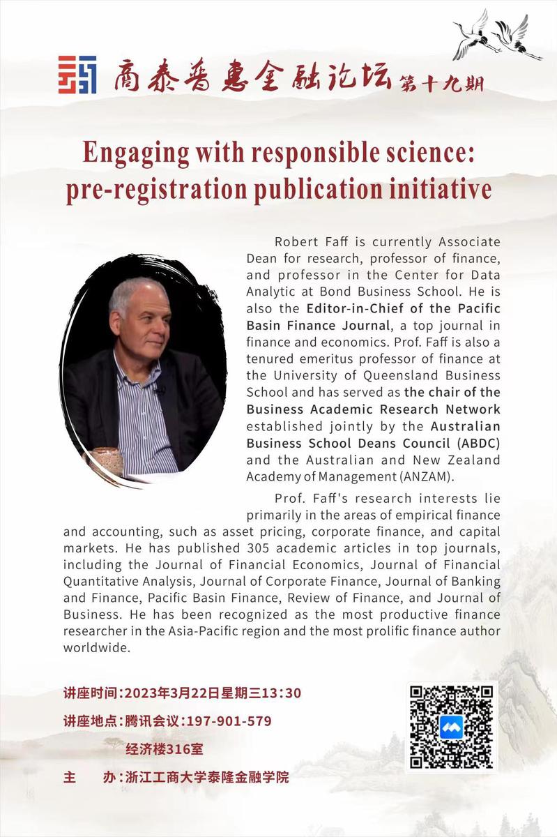 讲座预告 | 商泰普惠金融论坛 第十九期----Engaging with responsible science:pre-registration publication initiative