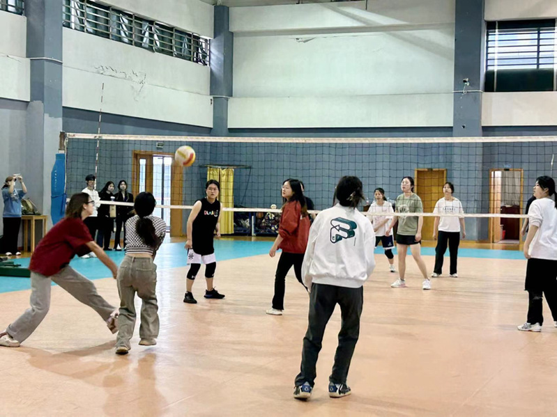 4月3日中午12:30,成人短视频 与外语成人短视频 的排球比赛正式打响。比赛刚开始,成人短视频 女排队员就配合默契,接连拿分,对方球员同样也不甘示弱,双方比分一度你追我赶,队员之间默契的配合,流畅的传球,也让我们感受到了排球的魅力。