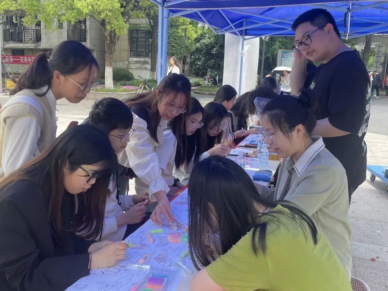活动现场,活动负责人准备了涂鸦画卷,胶画小人,贴纸与画笔,邀请同学们积极参与绘画,活动进行得如火如荼。制作完成后的胶画小人可以自行带走,这不但能够让同学们感受绘画的美好,还能珍藏这份美好。