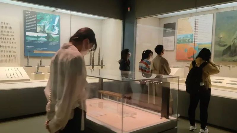 首先参观的是文明曙光——史前时期的浙江。在这里,同学们了解到浙江境内的人类活动可以追溯到100万年前的旧石器时代,并且从距今一万年左右的时候起,钱塘江两岸便先后进入了新石器时代。