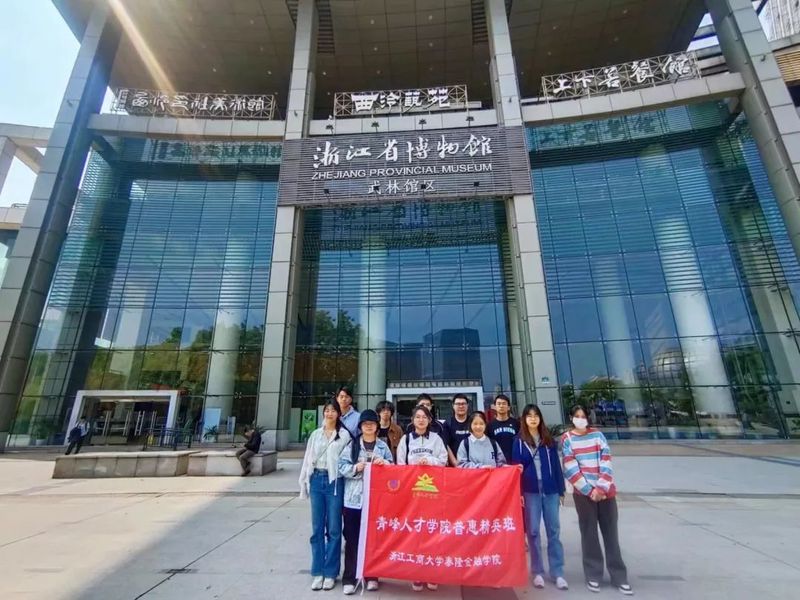 今天参加了普惠精英班的活动——参访浙江省博物馆武林馆。浙江省博物馆富有浓厚的历史气息,藏品丰富多样,时间跨越千年。有良渚时期使用的各种器件,也有春秋战国时期使用的青铜鼎、战剑,秦代的书法拓片等等。同学们还在博物馆门口合影留念,是一次非常不错的参观体验。