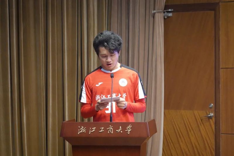 第六个展示的是文体之星候选人胡昊鸣。胡同学对所从事的文体活动具有浓厚的兴趣,并对其持续追求和专注,三年期间,他取得了许多成果:作为主力队员获得2021年浙江省青少年校园足球联赛大学男子组第七名;获2020年新生杯田径比赛男子跳远第二名;在成人短视频 第39届田径运动会男子跳远中获得第四名;作为主力队员在2020年成人短视频 新生杯男子足球亚军;作为主力队员在2021年成人短视频 新生杯八人制足球赛四强。