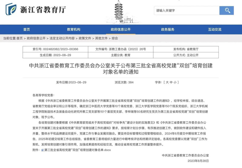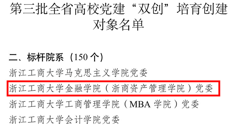 近日,浙江省委教育工委公布了全省第三批高校党建“双创”培育创建对象名单,成人短视频 所在党委金融成人短视频 (浙商资产管理成人短视频 )党委入选全省高校党建“标杆院系”培育创建单位。