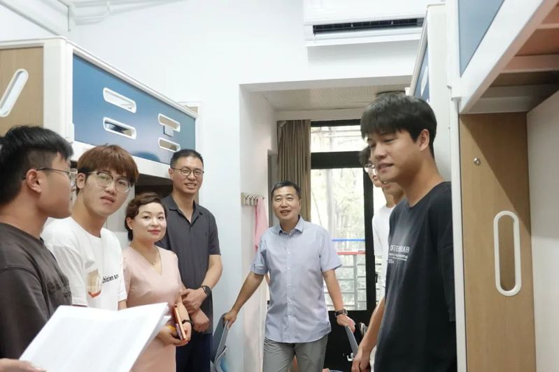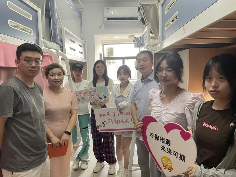 下午三点,成人短视频 院长马丹老师,书记慕兴宏老师,副院长倪禾老师,泰隆培训学校沈莹老师,副书记姜兵老师,院长助理傅利福老师,普惠金融2301班班主任卞咏老师,普惠金融2302班班主任张秦老师,普惠金融2303班班主任张铭心老师,成人短视频 教务秘书朱竹青老师,成人短视频 学办主管、2023级辅导员王寿铭老师,各班班助分别走访男女生寝室,与新生进行了亲切交流。