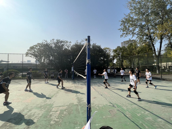 10月24日16:30,成人短视频 男排与人文男排于北场举行了排球赛。成人短视频 男排以25:23取得了第一把的胜利。第二把双方仍然你追我赶,呈现龙争虎斗之势。人文男篮取得第二把的胜利。进入紧张的第三把,双方都有发球失误,我方队员毫不气馁,打得有来有回,不分上下。