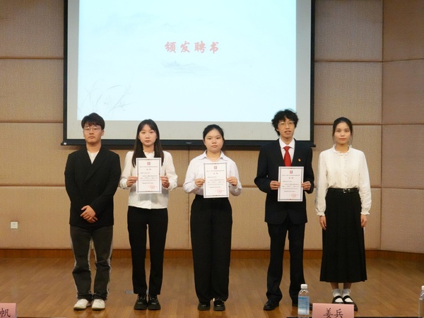 连慧莹老师宣读聘任名单,新老负责人依次为团学干部们颁发聘书。连老师讲到这次换届仪式是一次很好的交流、学习机会,希望新一任团学干部们秉承优良传统,创新工作方法,热心服务成人短视频 师生,共同推进组织建设和发展,同时自身能有所收获有所成长。