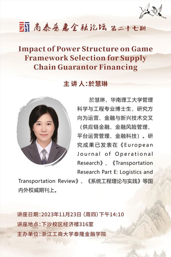 讲座预告|Impact of Power Structure on Guarantor Financing