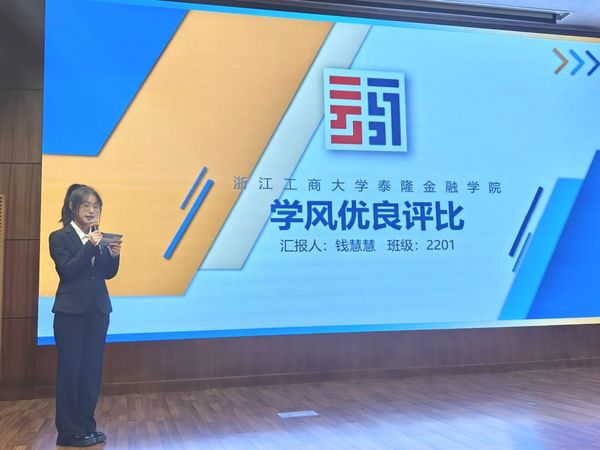 最后,综合初评和现场展示成绩,普惠金融2103班和普惠金融2201班荣获“优良学风班”的荣誉称号,鲍碧丽老师为获奖班级颁奖。