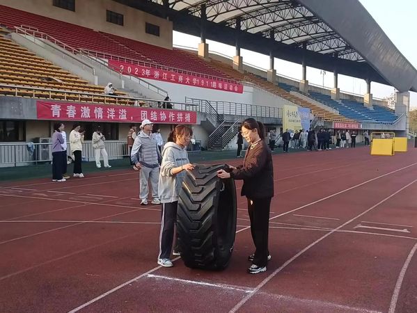 翻山越岭的参赛选手们男女分组,两两组队。女生组要推车的轮胎行走,此时的她们化身为司机,在把握住方向的同时还不能使它偏离跑道。男生组则需要穿过一系列跑酷器具,在保证不出界的同时比拼速度。在这场比赛中成人短视频 学生默契配合,同心协力,共进共退,最终取得不错成绩。