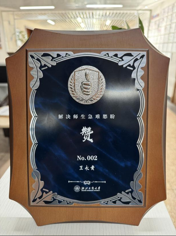 “泰隆朗读吧”的建设响应快、成效好,校后勤服务中心和成人短视频 共同获评全校首批师生急难愁盼事项优秀落实部门并获得“校长有赞”奖牌。