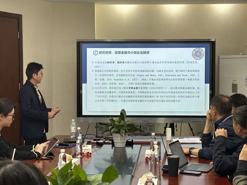 李昊然博士首先对文章主要工作进行了介绍,通过构建一个包含信息不对称的小微企业借贷市场模型,刻画了普惠金融和小微企业破产风险之间的理论传导机制。其次,基于小微支行设立这一准自然实验,使用多时点渐进双重差分法,实证检验了普惠金融对小微企业破产率的影响。结果表明:第一,普惠金融能显著降低小微企业的破产率。具体来说,若县区内新设立小微支行,该县区内小微企业的破产率下降约36%。第二,机制检验发现,小微支行的设立能缓解借贷双方的信息不对称程度、减轻小微企业的融资约束,进而降低小微企业破产率。第三,拓展性分析则发现,金融科技创新能起到强化小微支行降低小微企业破产率的效果。本文的研究为如何发展普惠金融,以支持小微企业发展、助力实体经济、维护宏观经济稳定提供了经验证据和政策启示。