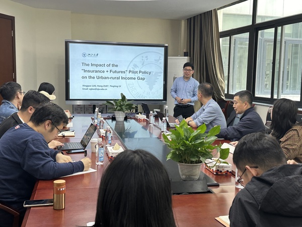 骆兴国教授首先分享了自己的一篇工作论文,文章以全国2014-2021年全国实行“保险+期货”项目的515个县为研究对象。骆教授指出,一直以来,中央一号文件对农业保险高度重视,“保险+期货”多次被提及,是当下发展普惠金融的“新型武器”,如陕西省延安市富县享有“苹果之乡”美誉,在当地政府大力支持下,联合浙商期货、郑州商品交易所、太平洋产险多家公司,通过推进“保险+期货”项目的顺利运行,推动了当地特色农业经济的发展,扩大了“延安苹果”的品牌影响力,为果农稳产增收提供了成功经验,也为当地巩固脱贫攻坚成果、推进乡村振兴工作贡献了金融力量。文章通过构建DID模型,实证结果表明推行“保险+期货”试点政策,有助于提升当地村民收入,缩小城乡收入差距,“保险+期货”这种新型金融工具,能够帮助农户降低经营风险、增加收入,破解市场价格波动导致增产不增收问题,助力当地农业企业实现保供稳价。