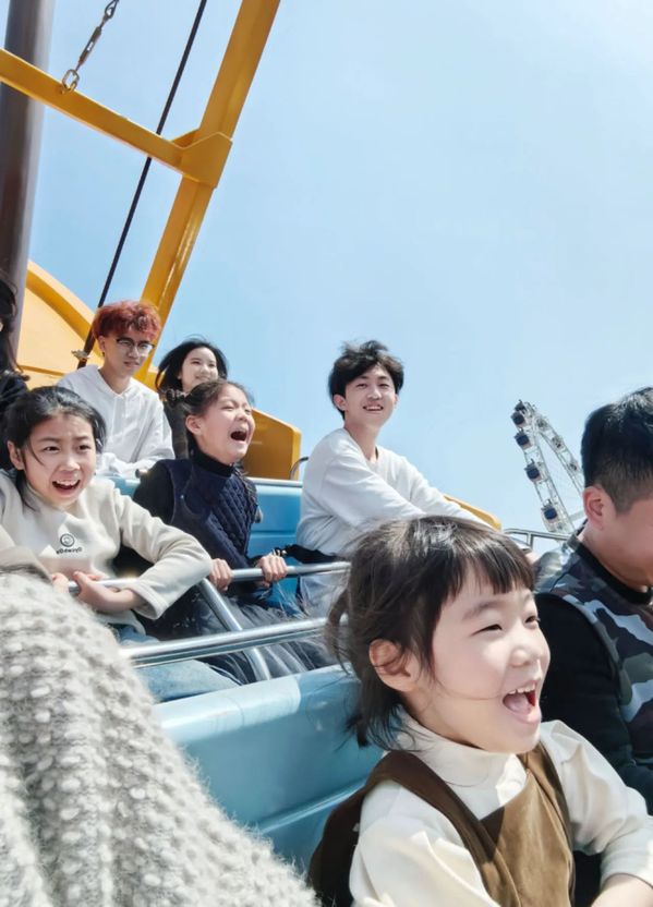 这是寒假时和家人还有妹妹们去游乐园玩时拍的,两个小娃娃是第一次去游乐园,玩海盗船时又怕又笑。那天天气很好,风也是暖暖的,好不容易和家里人有机会去旅游。妹妹抓着护栏尖叫,我看着他们笑。