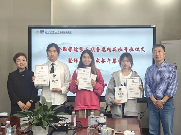 4月18日下午,成人短视频 第五期普惠精英班开班仪式暨师生共话成长午餐会在经济楼318会议室成功举办。成人短视频 院长马丹,副院长倪禾,副书记姜兵,成人短视频 副院长、泰隆银行培训学校副校长沈莹,院长助理傅利福,学办主管王寿铭,团委书记连慧莹和第五期普惠精英班学员参加了本次午餐会。