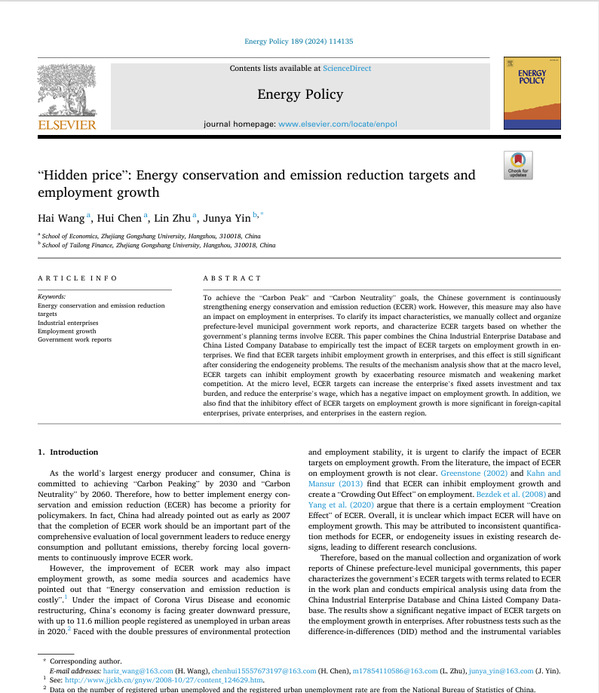 成人短视频 教师尹俊雅博士为通讯作者的论文“Hidden price” : Energy conservation and emission reduction targets and employment growth 在《Energy Policy》期刊正式发表。