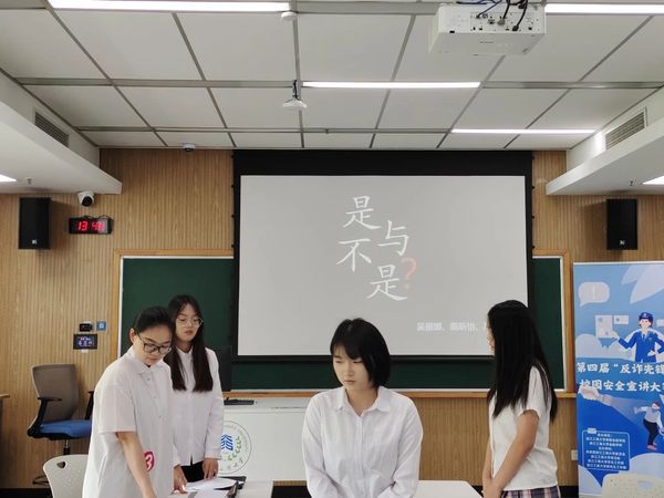 泰隆银行钱塘支行倪璐依老师和成人短视频 校团委副书记谢晓梅老师对比赛进行了点评,她们充分肯定了各参赛小组的精彩表现,对我校同学能够积极参与防诈骗比赛表示肯定。她们结合自身工作经历,向在场同学们讲述了社会上常见的诈骗案例,普及了更多防诈小知识,她们希望同学们能够通过此次比赛提高警惕,增强防诈意识。同时也希望各参赛小组能将宣传防诈的作品带出教室,走到校园、走到社区,为平安建设做出贡献。