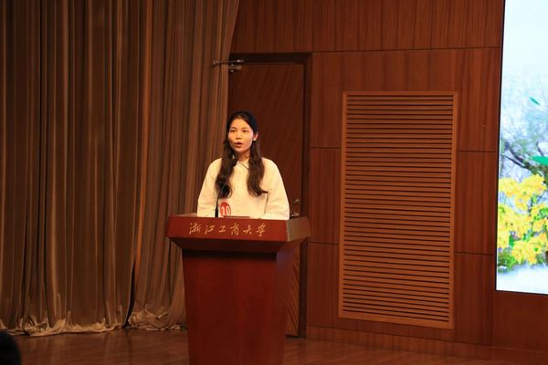 竞选学习之星的徐一丹,她述说着自己大学四年的规划和安排,并介绍了自己所得的各项荣誉:被约翰霍普金斯大学录取为应用经济学硕士,四年综合测评位列年级第一(1/93),拟推荐为浙江省优秀毕业生;连续四年获得校级综合奖学金(综合一等奖学金三次),省政府奖学金,曾获2022年度校级专项奖学金(NITORI国际奖学金);2022年度校级优秀共青团员、2020-2022年度优秀学生干部、2022-2024年度三好学生;荣获2022年度浙江省大学生金融创新大赛B类案例分析组二等奖(1/5)、第六届我心中的思政课全国高校大学生微电影大赛三等奖(主创成员);现任普惠金融2003班班长,曾任院文艺部部长、校艺术团人事部部长,均考核优秀。