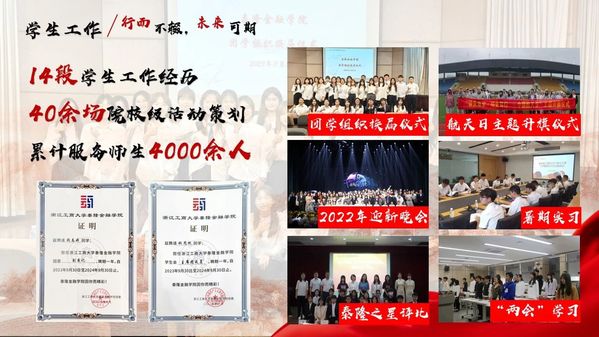 行而不辍,未来可期,在学生工作方面,寝室4位同学共计有14段学生工作经历,参与和组织40余场院校级活动策划,累计服务师生4000余人。