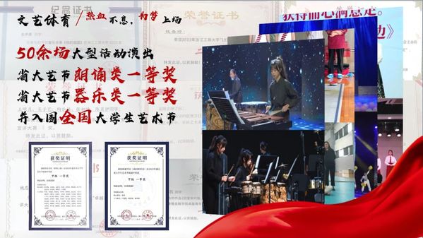 文体方面,316的每个人都身怀才艺,不论是文艺方面的器乐、舞蹈、朗诵、主持,还是体育方面的排球、旱地冰壶、乒乓球等,是她们的爱好,更是她们的特长。她们共计参与50余场大型活动演出,也积极参与各种文体类赛事,同时斩获大艺节器乐类和朗诵类两项省一。