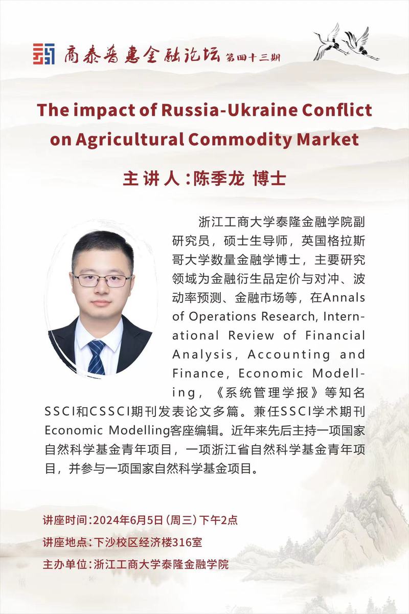 讲座预告|The impact of RU-UA Conflict on Agricultural Commodity